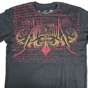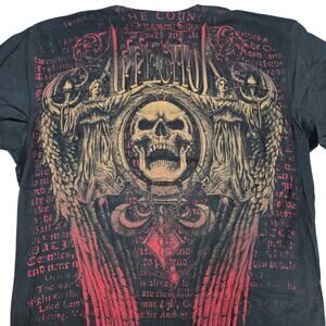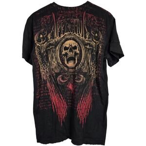 Keywords: Affliction, T-shirt, Mens, Large, Black, Graphic, Skull, Wings, Text, Short Sleeve, Casual, Streetwear, Edgy