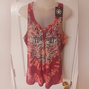 Affliction Tie-Dye Red Sleeveless Top NWT