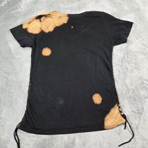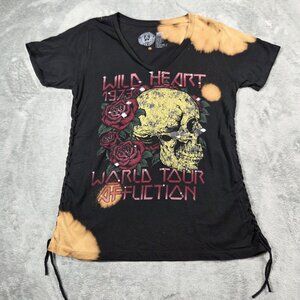 Affliction Top Womens M Black Bleached Wild Heart Skull Roses Gothic Grunge