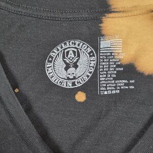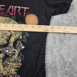 Affliction Top Womens Medium Black Bleached Wild Heart Skull Roses Gothic Grunge