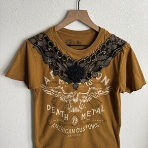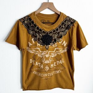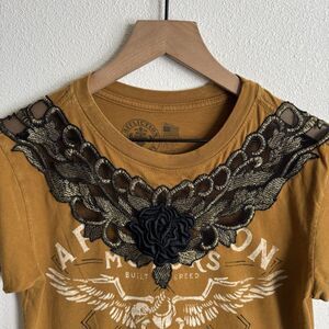 Affliction Top Womens Small Yellow Rose Lace Graphic Grunge Affliction Motors