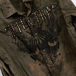 Affliction Y2K Embroidered Button Up Long Sleeve Tye Die Shirt Green Gold Men S