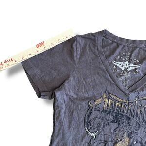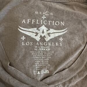 Affliction Y2K Grunge Skull Short Sleeve Shirt Womens Size L Brown Gray