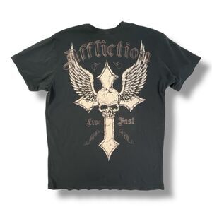 Affliction Y2K Live Fast Cross Skull T-Shirt Size Large
