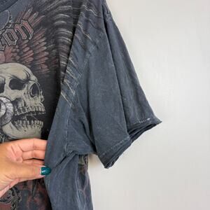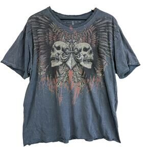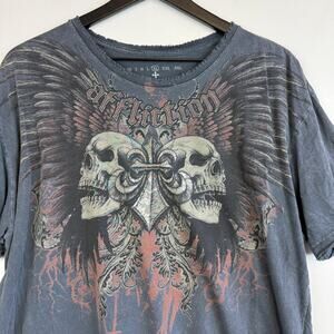 Affliction Y2K Trashed Gray Skull Wings Graphic TShirt Mens - XL