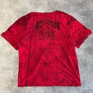 -y2k Affliction graphic tee with bold gothic print and distressed red wash. Iconic Y2K biker vibe — pairs perfectly with denim and leather for that grunge streetwear look.