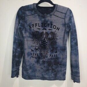 Affliction long sleeve Reversible skull waffle thermal long sleeve size med