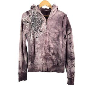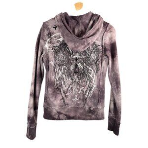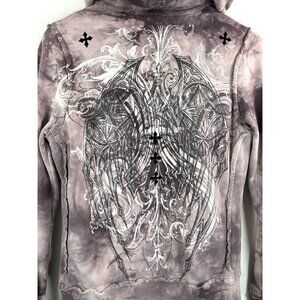 Affliction womens goth grunge psychedelic hooded zip jacket Y2K sz M