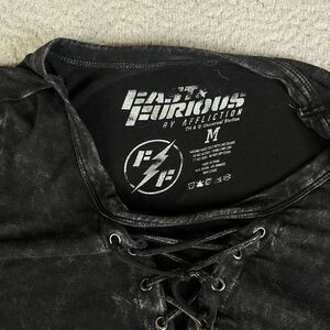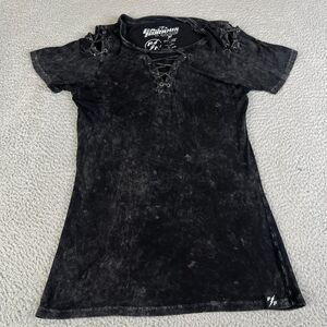 Affliction x Fast and Furious T Shirt Womens Medium Black Tie Dye Lace Up Sleeve