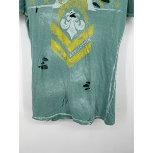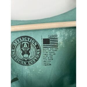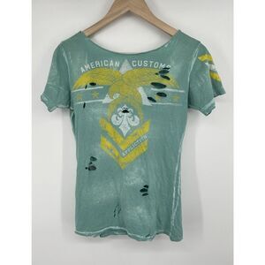 Affliction Womens Size Large Distressed Teal Blue Top Eagle Biker Tatoo
