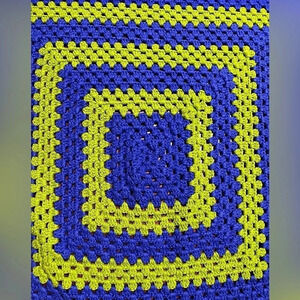 Afghan Blanket Throw Granny Square Crochet Wool Multi-Color 34 X 33 EUC Gorgeous