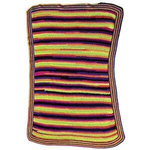 Afghan Crocheted Blanket Throw Halloween Stripe Orange Black Purple Handmade