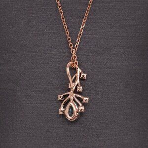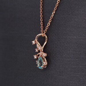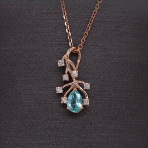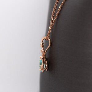 Fine 14k rose gold pendant featuring a genuine Afghan Paraiba Color tourmaline and earth mined diamond accents in an organic vine motif—romantic and refined.