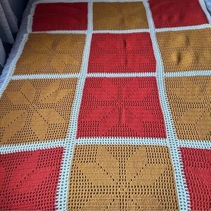 Afghan Throw Blanket Twin Gold Rust Color Mid Century Modern 55” x 75”