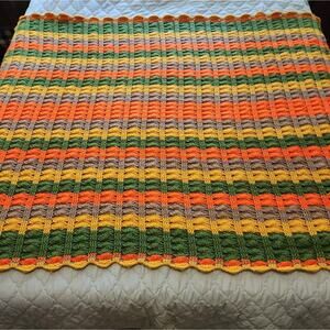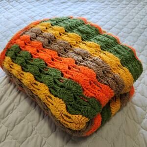 Afghan Throw Blanket Yellow Orange Green 70s Fall Handcrafted Vintage Grannycore