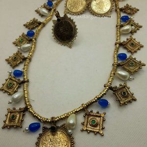 Afghan Tribal Vintage Hasli Pearls Choker Necklace With Coins Earrings and Ring