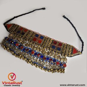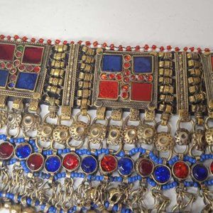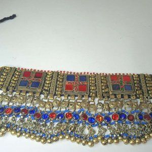 Afghan Tribal Vintage Statement Choker, Afghan Choker With Beads and Glass Stone