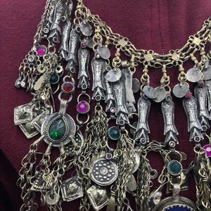 Afghan Vintage Silver Kuchi Fish Oversized Choker Necklace, Kuchi Jewelry,