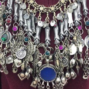 • This Afghan tribal necklace gives you a complete traditional look for going on a wedding and any jovial occasion. It will pleasantly suit you and make you look prettier. It will attract those eyes which are in search of tribal and cultural jewelry.