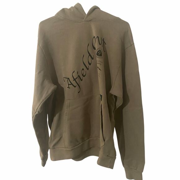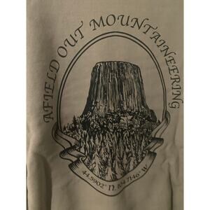 Afield Out, Gorpcore, Streetwear, Hiking, Climbing, Mountaineering, Devils Tower, Outdoor, Nature, Graphic Hoodie, Sweatshirt, Tan, Beige, Sand, Heavyweight, Cotton, NWT, Medium, Camping, Wyoming