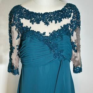 Aflred Angelo Teal Formal Gown Mother of the Bride Dress Womens Size 12 MIB Lace