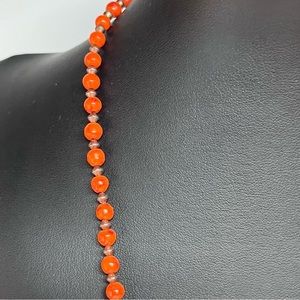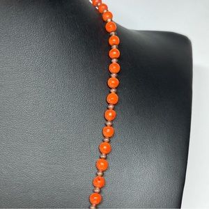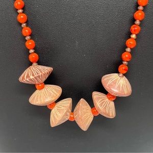 Single strand hand crafted Natural beads in a red/orange, brown and beige/tan colorway.
