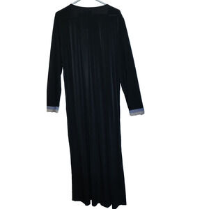 This is NEW WITH TAG and also comes with detached scarf. Black with gold embroidery and gold Rhinestones that make a very nice design on the front. Just pullover to wear. I cannot find the material contents tag nor the washing instructions, but I believe this is a Rayon that feels like a silk. Dry Clean or Steam Clean. SIZE L women's large.