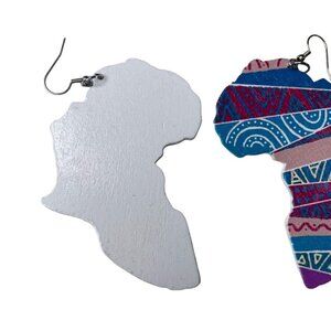 Africa Shaped Wood Earrings With Colorful Tribal Patterns Fishhook Backs 90s u