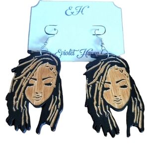 African Afro Natural Ethnic Lady Girl Locs Dangle Drop Wood Earrings