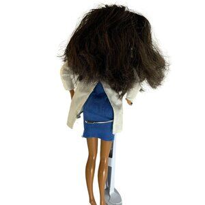 This vintage African American Dr. Barbie Doll by Mattel, dating back to 1993, lets girls hear a baby's heartbeat. The brown fashion doll signifies a career Barbie, crafted from durable plastic.
