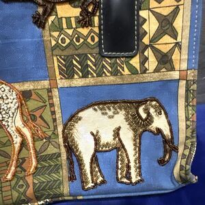 African Animals Handbag Purse Small/Cross Body Beaded Safari Neutral Tan Blue