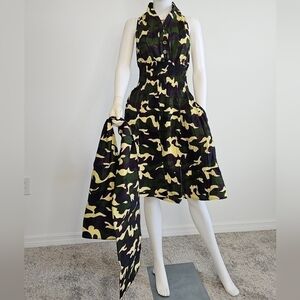 African Ankara Style Print Cotton Women Mid Length Smocked Dress Sundress