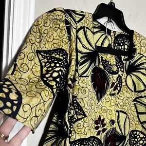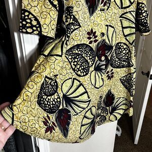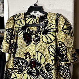African Ankara Women's Blouse & Skirt Suit Dress Knee Length Sz M Dashiki Yellow