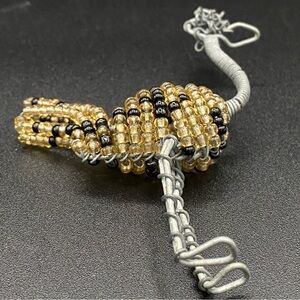Cool and unique hand beaded amber brown and black emu or ostrich bird pendant, figurine, keychain