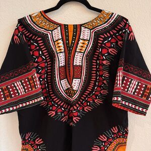 African Dashiki Traditional Boohoo Dressy Shirt Top Black Multicolor 48" Chest