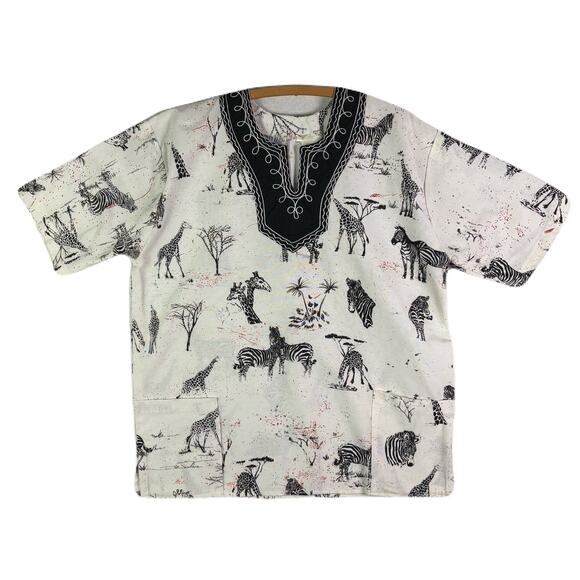 African Design Zebra Print with Decorative Collar Shirt Adult Size XL