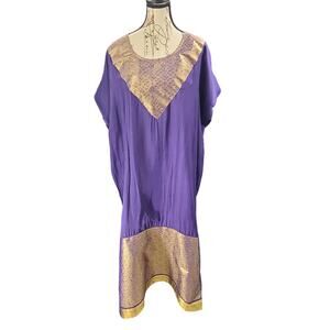 Tags: African, Ethnic, Vintage, Dress, Robe, Gold Brocade, Purple, Size XL, Plus Size