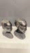 One male, one female hand carved sculptures of heads measuring roughly 6" by 5". Some rub marks can be seen on the noses. No signature or markings on the base.
