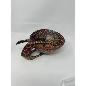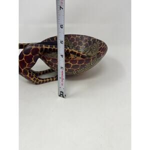 African Hand Carved Olive Wood Giraffe Drinking From Bowl Trinket Dish Vintage