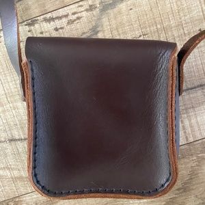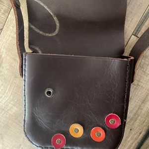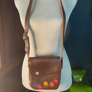 African Handmade Brown Leather Crossbody Bag with Colorful Leather Accent