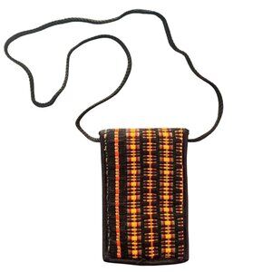 crossbody bag, tribal pattern, handcrafted accessory, compact design, woven material, zipper pocket, colorful bag, adjustable strap, lightweight bag, small purse, ethnic style, African-inspired, shoulder bag, Boho