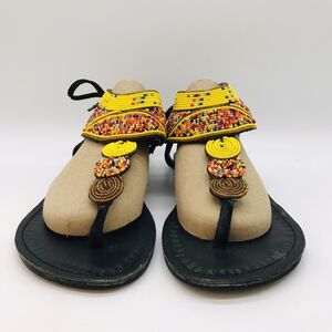 African Maasai Handcrafted Beaded Sandals Women's 9 Black Genuine Leather Kenya