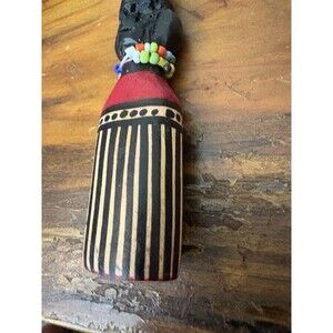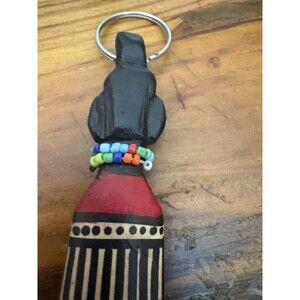 African Maasai Worrier Shaped Hand Carved Key Chain Wooden With Beads. Condition is Pre-owned.