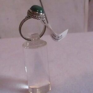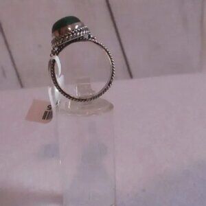 Attain an eye arresting appeal with this Bali Legacy Collection ring. Adding a rustic charm to your everyday look the piece is detailed with twisted wires. The piece exhibits a cabochon oval of African malachite. Malachite's name is derived from the Greek ‘molochitis lithos’ meaning "mallow-green stone" or ‘mahle’ meaning "green mallow plant" after its resemblance to the leaves of the mallow plant.
