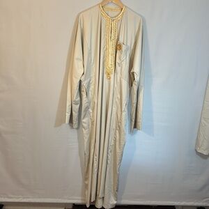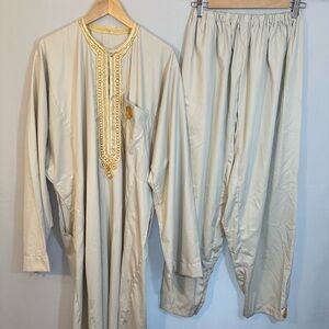 African Mens Long 2 Piece Suit Kaftan Shirt Pants Trousers Embroidered Gray Grey
