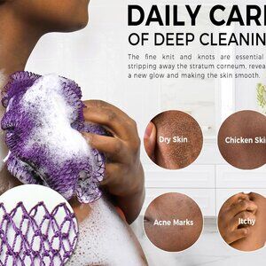 Effective Body Scrubber: The fine knit and knots are essential for stripping away the stratum corneum, revealing a new glow and making the skin smooth and healthy. With an average length of 40 inches , you can easily reach every area of your body. The ropes attached to the ends of the sponge make it easy to holder when you need to clean your back.