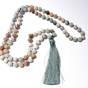 African Opal Mala Meditation 86 Beads Necklace Tassel NWOT