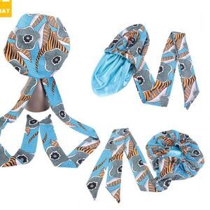 African Print Satin Bonnet With Long Ribbon Wrap Double Layer Headwrap Ankara Pattern Women Hair Cover Large Size Hair Wrap Cap