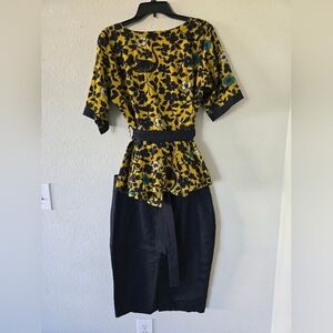 African Print Women's Floral Print 2PIECE Set Skirt&Open Top W Belt art to wear
