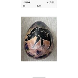 African Soap Stone Egg/Ball Hand Painted Giraffe, Elephant, Rhinoceros Set/8